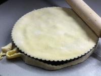 Die angegebenen Zutaten zu einem Teig ("pâte à foncer") verkneten. Zuerst erweichte Butter mit Zucker schaumig rühren. Ei und Salz beimischen. Gesiebtes Mehl schrittweise zugeben. Fertigen Teig nun mindestens eine halbe Stunde im Kühlschrank ruhen lassen.