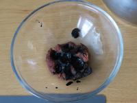 Tierkohle zerbröckeln und in etwa Wasser vermischen. Obststäbchen durchkneten, ein paar Tropfen von Tierkohle zugeben und durchkneten. Die schwarze Mischung wird für Augen, Ohren, Nase und Mund verwendet.