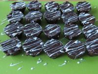 Mit der breiteren Seite nach oben stellen und mit geschmolzener weißer Schokolade dekorieren.