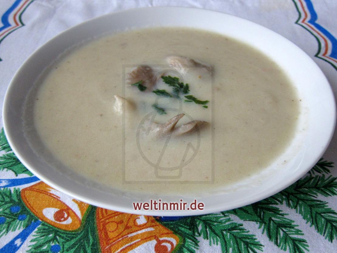 Einfach und schnell zubereitete Suppe. Fein gemixte Austernpilz - Kartoffel - Suppe.