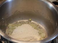 ...Wasser zugießen und gründlich vermischen. Mehlschwitze 10 Minuten kochen, von Zeit zu Zeit rühren.