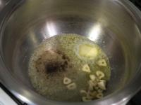 Butter in Topf zerlassen, Knoblauch darin anbraten und Gewürz kurz heiß laufen.