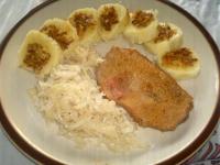 Den Knödel in Scheiben schneiden und beim Servieren auf jede Scheibe bisschen Zwiebel geben.