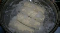 In ein kochendes gesalzenes Wasser geben und bei mittlerer Hitze ca. 15-20 Minuten kochen lassen. Während des Kochens leicht durchrühren, damit der Knödel nicht unten kleben bleibt und auf die Oberfläche schwimmt.