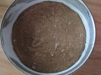 Teig in die ausgefettete und mit Mehl bestreute Tortenform eines Durchmessers von 22 cm gießen.