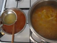 Die Mehlschwitze ein paar Minuten köcheln lassen (bis sich das Mehl komplett aufgelöst hat …) und anschließend durch ein Sieb in die kochende Suppe gießen.