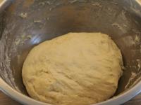 ... und den Teig gut mischen. Mit einem sauberen Küchentuch abdecken und an einem warmen Ort aufgehen lassen.