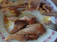 Gebratenes Fleisch vom Knochen lösen und servieren.