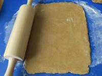 Den Teig in zwei Hälften verteilen. Eine Hälfte auf einem bemehlten Brett auf eine Blechgröße (22x32 cm) ausrollen. Die Kanten ebnen...