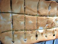 Oberteil mit Dörrpflaumen bedecken. Im vorgeheizten Backrohr 50 Minuten bei ca. 175 Grad bedeckt backen.