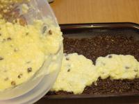Kokos-Eiweißschnee auf den Auflauf auf 12 Teile schmieren.