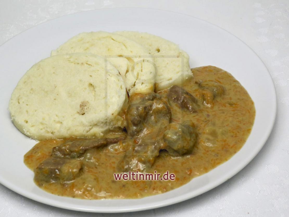 Rindfleischwürfel in Sahnesauce mit Möhre