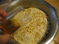 Butter mit Zucker und Kakao schaumig schlagen. Gemahlenen Walnüsse untermischen. Den Teig mit schon vorbereiteten Biskuits vermischen und 2 Stunden stehen lassen.