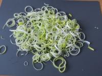 Mit Käsemischung begießen und Porree auf die Oberfläche legen.