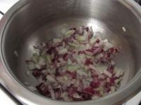 ....Zwiebel zugeben, salzen, vermischen, Wasser aufgießen und 15 Minuten dämpfen.
