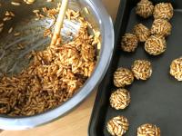 Beliebte Puffreis-Bällchen ohne Milch und Butter, aber genauso gut wie diese mit Butter und eingedickter gesüßter Milch ... und vielleicht sogar noch besser. Yummy!