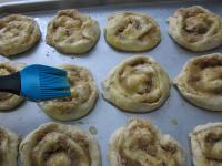 Teig so fest wie möglich zusammenrollen. Rand mit ausgeschlagenem Ei bestreichen und zum entstandenem Strudel anknüpfen.